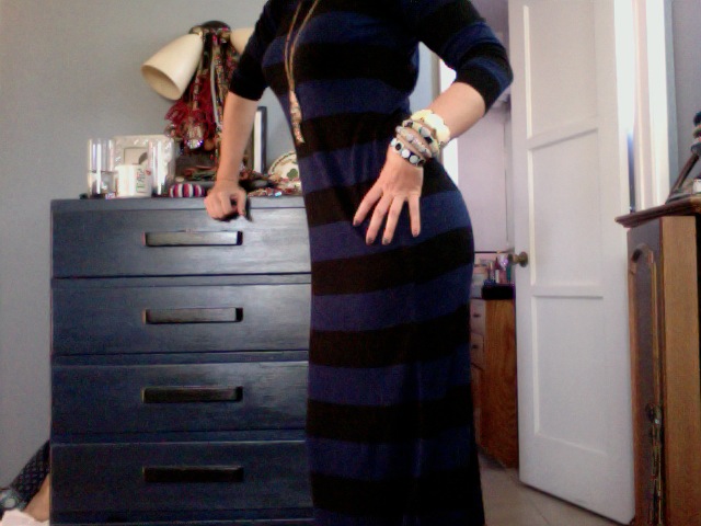 Just to prove that it's not hard to dress nicely with very little $, the dress I'm wearing is from Old Navy, but it reminds me of something Michael Kors would do.